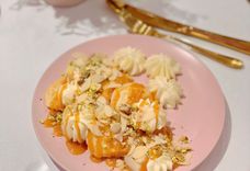 170 г • подаются на подушке из сметанного крема с топпингом на выбор: клубника, карамель, шоколад